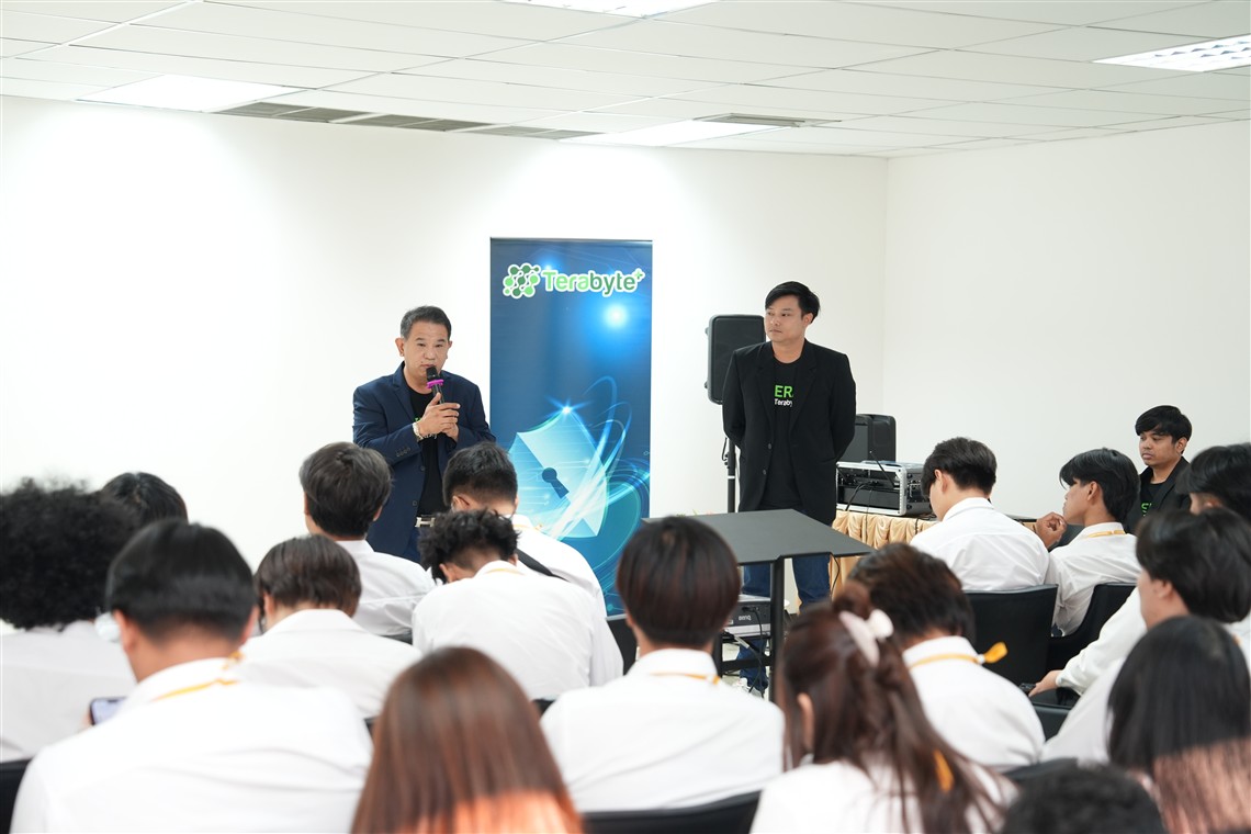 The activity also provided students with the opportunity to experience a real working environment across different areas of the organization, including operational workspaces and business processes. The delegation was guided by company professionals and mentors, including Mr. Tatsapon Kueyen, Service Manager at Terabyte Plus Public Company Limited, and Mr. Suwicha Sudjainiyom, Sr. Solution Consulting Manager at Skyfrog Co., Ltd., who shared their experiences and engaged with students in a friendly and interactive environment.
