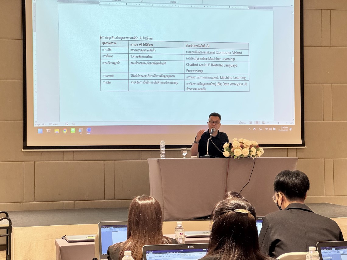 The workshop was honored by the presence of Asst. Prof. Dr. Tipajin Thaipisutikul, Assistant Dean for Academic Services and Technology Transfer; Miss Siriporn Rojanakosol, Assistant Dean for Information Technology; Dr. Sujika Srinuntakul, Assistant Dean for Quality Development and Knowledge Management; and Mr. Prach Chaisiri, Computer Technical Officer from the Information and Systems Division — all of whom served as instructors, sharing their expertise in using digital tools to enhance skills and improve work efficiency. The training was attended by 40 participants from various government agencies, and took place at TK Palace Hotel & Convention, Bangkok.