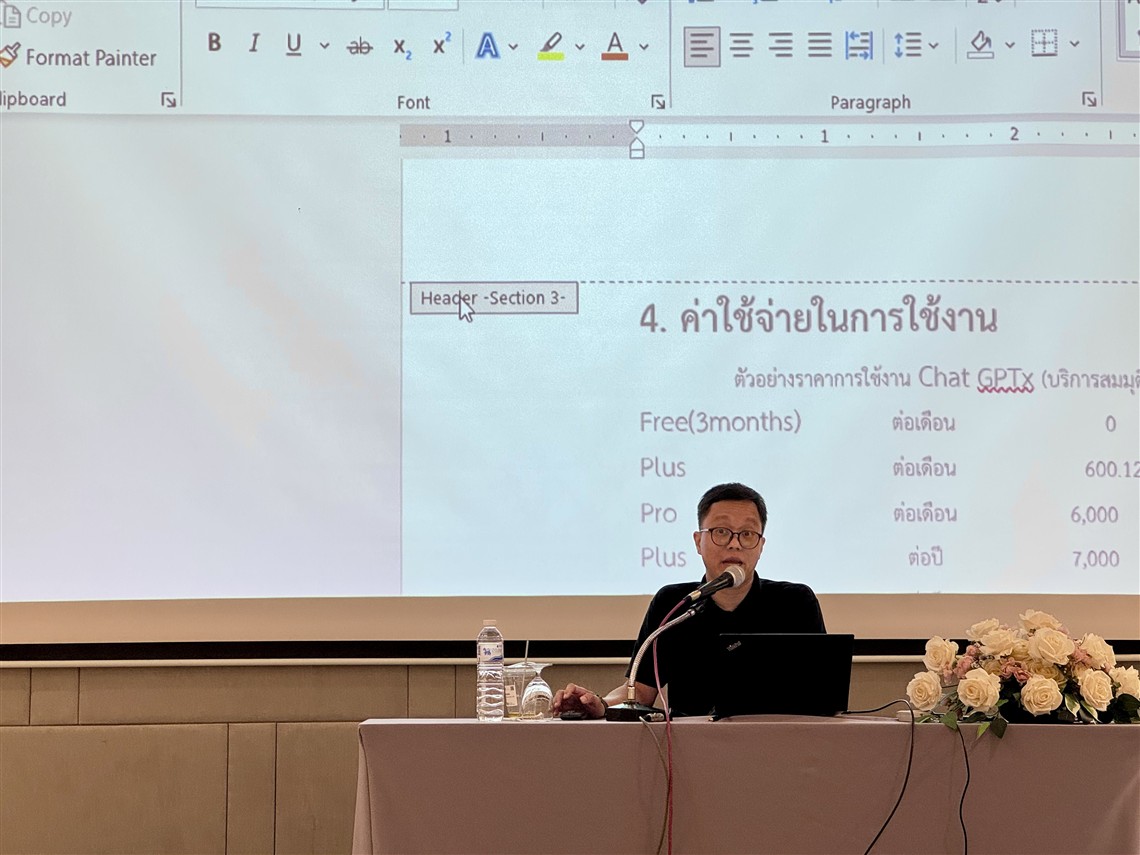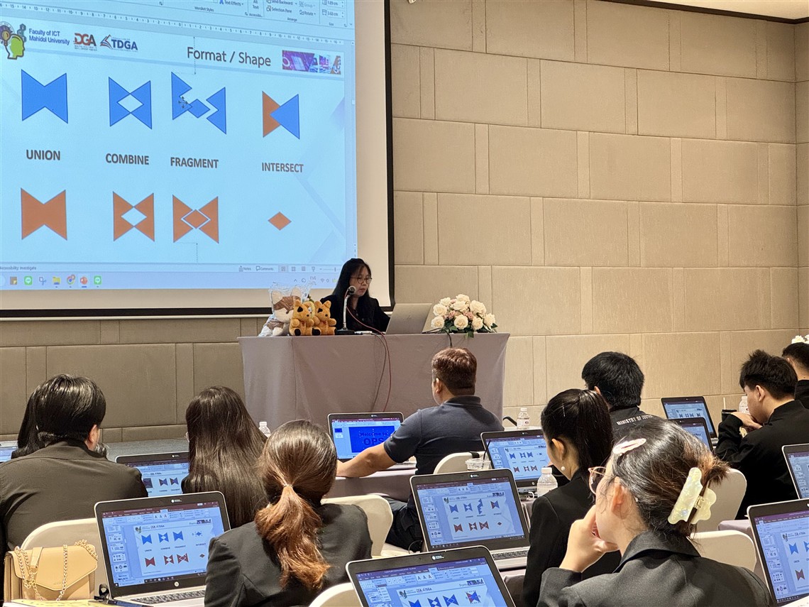 The workshop on “Essential Digital Tools for Workplace (DGA102)” was designed to enhance the understanding and practical skills of participants—particularly government officers— in the effective and efficient use of digital tools. The course focuses on developing three main competencies: creating professional presentations and documents, managing and analyzing data, and integrating AI technologies into workplace processes. The training features hands-on learning with a variety of digital tools, including:
