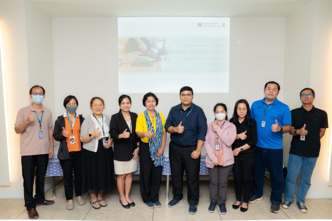 On June 20, 2025, the Faculty of Information and Communication Technology, Mahidol University (ICT Mahidol), led by Asst. Prof. Dr. Siripen Pongpaichet, Assistant Dean for Information and Systems, Ms. Siriporn Rojanakosol, Assistant Dean for Information Technology, Ms. Phayao Tiwaporn, Deputy Dean for Budget and Finance, and staff from the Information and Systems Division, welcomed Ms. Punyaphat Phuprasertsak, International Standard Auditor from TÜV NORD (Thailand) Limited for the surveillance audit of the ISO/IEC 29110-4-1:2018.