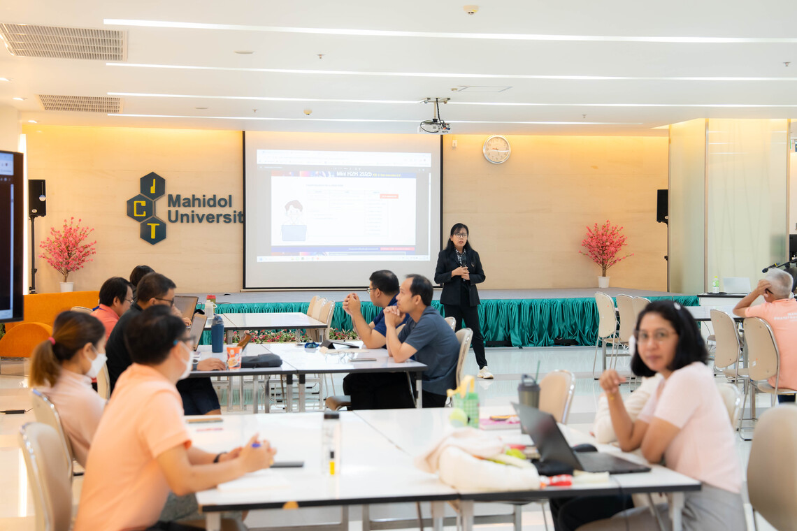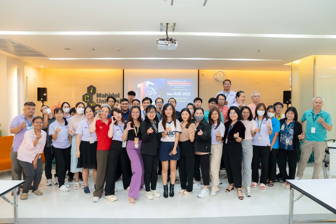 On May 27, 2025, the Faculty of Information and Communication Technology, Mahidol University (ICT Mahidol), organized the 2nd Mini R2R 2025 under the topic of “ICT Master 2025 (R2R + Data Innovation + AI).” The event was attended by support staff from 15 divisions within ICT Mahidol at the Grand Auditorium, 4th Floor, ICT Building, Salaya Campus.