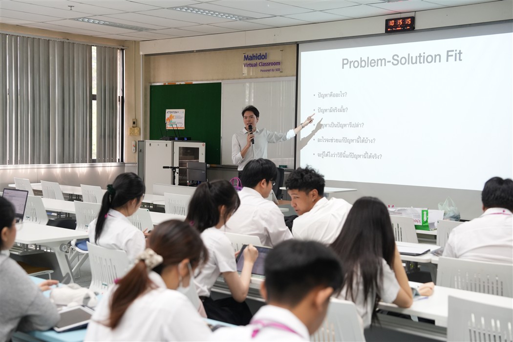 The session was honored by Asst. Prof. Dr. Yutthana Srisavat, CEO and Founder of iTax Incorporation Co., Ltd., who served as the guest speaker and shared practical insights into product development integrated with marketing strategies. The session focused on creating products and services that effectively meet the needs of target audiences, defining distinctive selling points, and building strong brand recognition to enhance competitiveness and foster sustainable business growth. The lecture was conducted for second-year students of the Bachelor of Science Program in Digital Science and Technology (DST Thai Program) in Room IT204, 2nd floor, ICT Building, Mahidol University, Salaya Campus.
