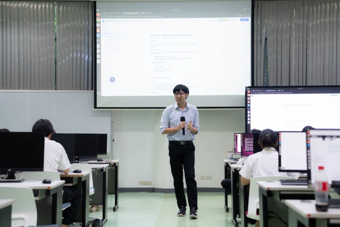 On September 10, 17, 24 and October 8 and 15, 2025, the Faculty of Information and Communication Technology, Mahidol University (ICT Mahidol), led by Dr. Sirawich Vachmanus, instructor of the course, ITDS331 Embedded and Cyber Physical Systems, organized a special talk on “Robot Operating System (ROS).” On this occasion, Dr. Kitti Tamrongapichatkul, served as the guest speaker. He shared his expertise on Robot Operating System (ROS), a widely adopted open-source software framework for robot development. This special talk was attended by 3rd-year students of the Bachelor of Science in Digital Science and Technology (DST Thai Program) and was held at Computer Laboratory IT212, 2nd floor, ICT Building, Mahidol University, Salaya Campus.