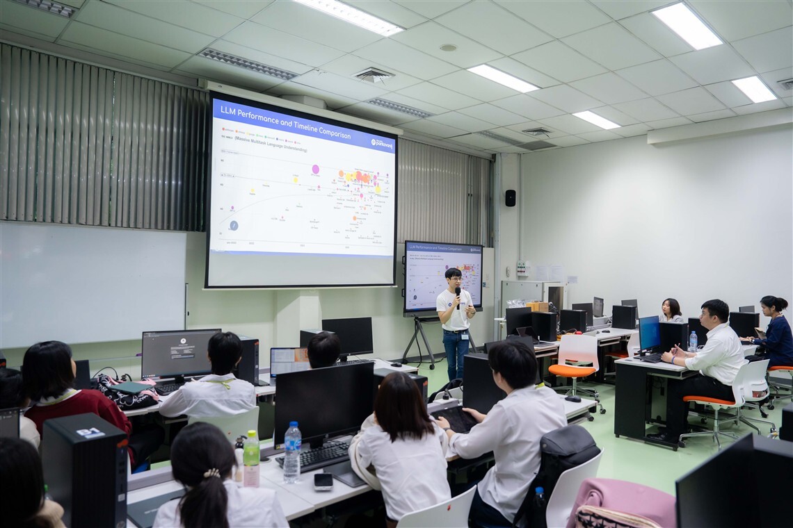 On September 9, 2025, the Faculty of Information and Communication Technology, Mahidol University (ICT Mahidol), led by Asst. Prof. Dr. Siripen Pongpaichet, Assistant Dean for Information and Systems, and Instructor of ITDS341 Fundamentals of Data Science, organized a special talk on “LLMs and beyond: The New Era of Intelligence.” On this occasion, Mr. Varanyu Visansirikul, AI Manager at Pantavanij Company Limited, together with his team served as guest speakers. They shared their knowledge and insights on Large Language Models (LLMs), their applications, and future directions with the third-year students of the Bachelor of Science in Digital Science and Technology (DST Thai Program). The session took place in Computer Laboratory IT103, 1st floor, ICT Building, Mahidol University, Salaya Campus.