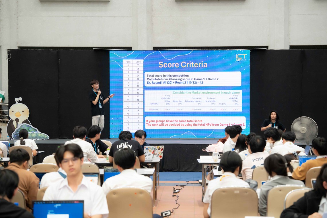 This activity was conducted as part of the ICT CUP 2025, a student competition aimed at fostering unity and collaboration among first- to fourth-year students from the Bachelor of Science in Information and Communication Technology (ICT International Program) and the Bachelor of Science in Digital Science and Technology (DST Thai Program). The competition aims to develop participants’ strategic thinking and business analysis skills. Eligibility for Round 3 required participants to successfully pass the selection process in Macro Business Simulation (MBS) Round 1 (Introductory Round), held on January 28, 2026, and Macro Business Simulation (MBS) Round 2 (Practice Round), held on February 4, 2026.