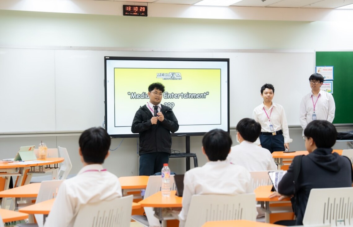 On January 21, 2026, the Faculty of Information and Communication Technology, Mahidol University (ICT Mahidol), in collaboration with the Media and Entertainment Club, organized a student activity titled “Media and Entertainment Club Introduction,” led by second-year students in the Bachelor of Science Program in Information and Communication Technology (ICT International Program). The opening remarks were delivered by Mr. Piyapong Pongruang, President of the Media and Entertainment Club. The activity was facilitated by the club members, including Mr. Thakorn Jullobol, Club Secretary, Mr. Atigun Kerdbourpatch, Club Treasurer, as well as Mr. Radhabhumi Pangkanont and Mr. Dechatorn Siladee, club members.