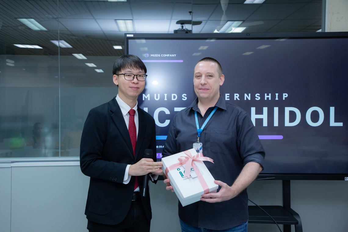 On December 27, 2023, the Faculty of Information and Communication Technology, Mahidol University (ICT Mahidol), held an event to review the learning outcomes of the software engineering related internship project for the 11th-year high school students of the Mahidol University International Demonstration School (MUIDS). On this occasion, Dr. Pisit Praiwattana, Assistant Dean for Organizational Communications and Media Technology, warmly welcomed Mr. Matthew Allsopp, English teacher & Curriculum Coordinator, and parents from the MUIDS in Room IT210, the Faculty of ICT, Mahidol University, Salaya.