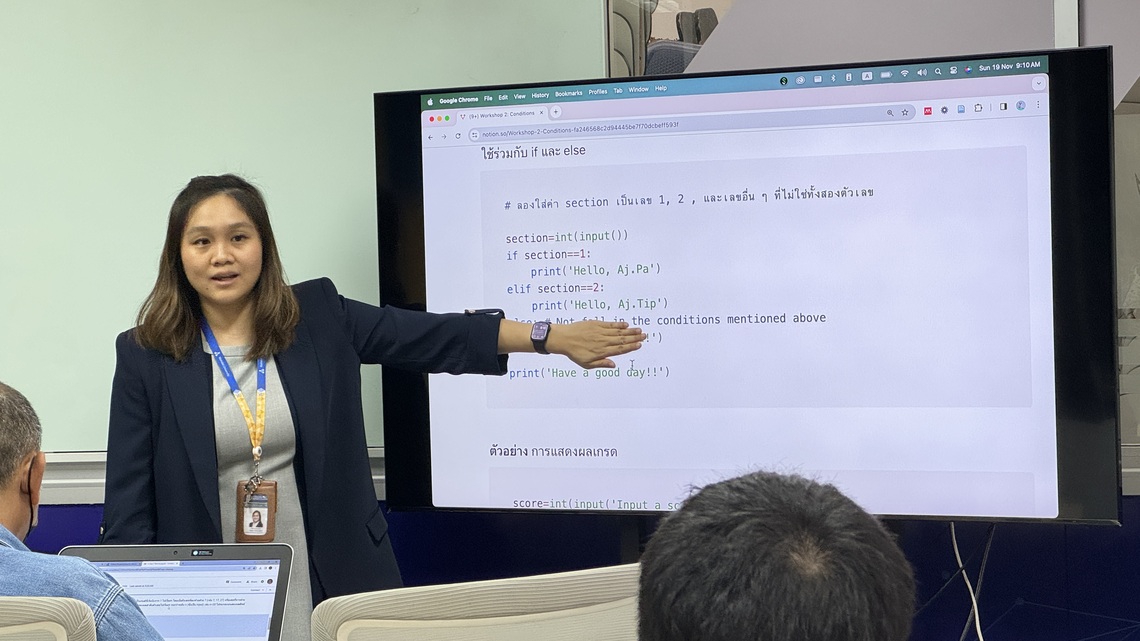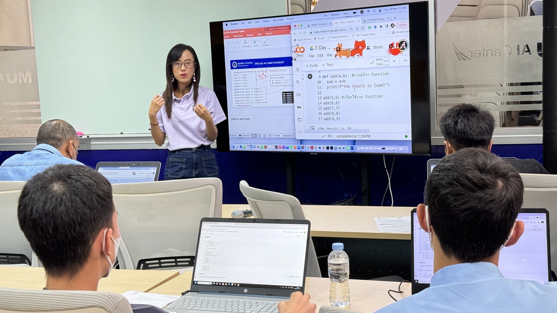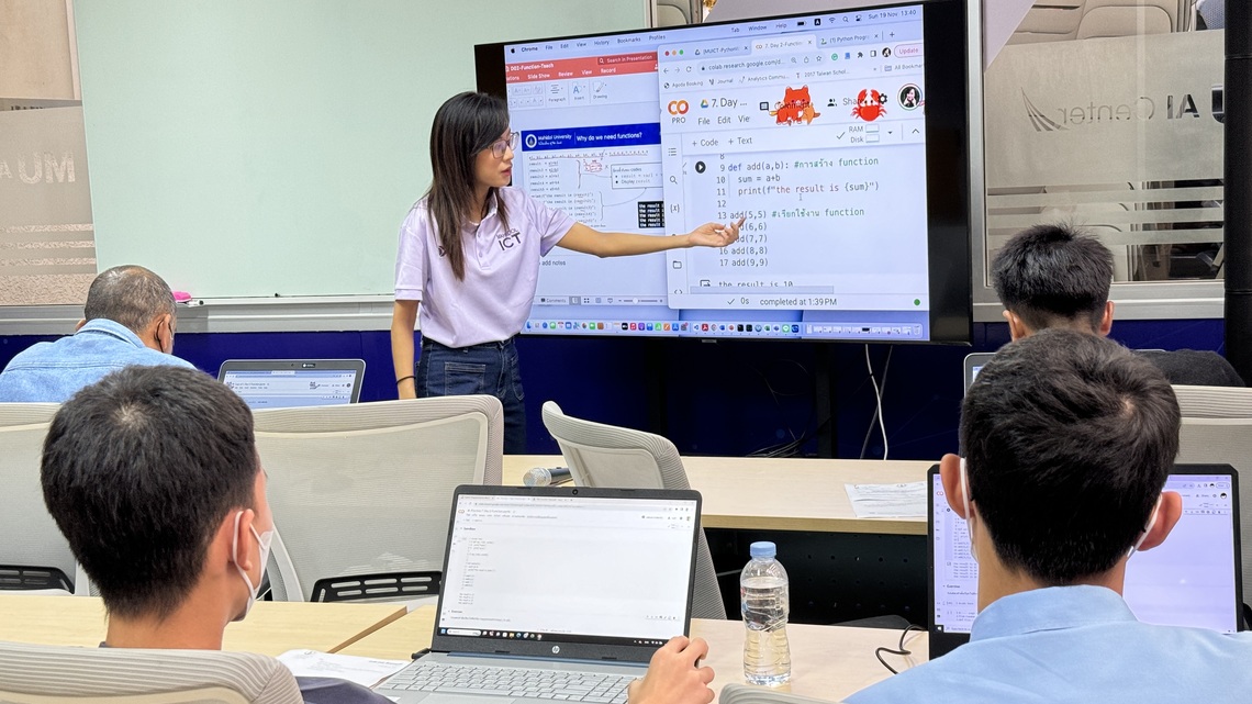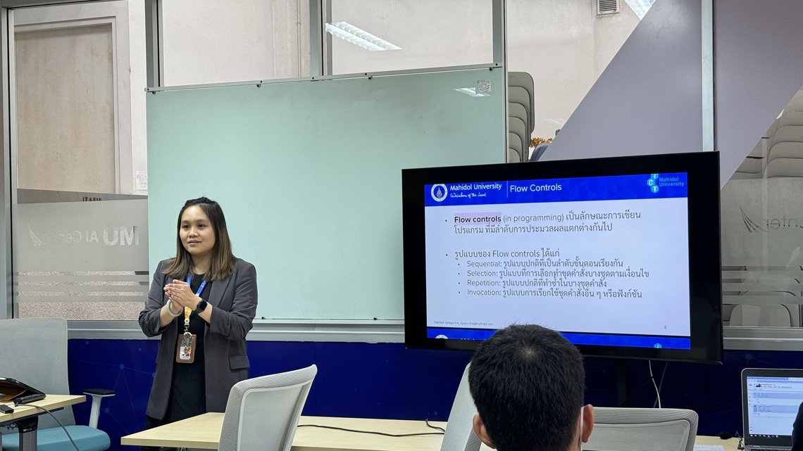 During November 18 – 19, 2023 – the Faculty of Information and Communication Technology, Mahidol University (ICT Mahidol), organized a practical training on “Python Programming for Absolute Beginners, Batch 2.” On this occasion, Dr. Tipajin Thaipisutikul, Assistant Dean for Academic Services and Technology Transfer, and Asst. Prof. Dr. Jidapa Kraisangka, Assistant Dean for Academic and Curriculum Development, served as keynote speakers in the Room A3, 1st floor, ICT Building, Mahidol University, Salaya.