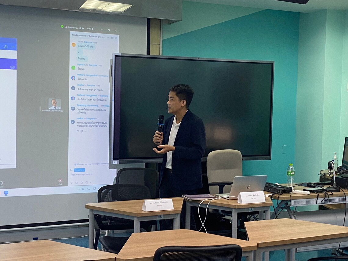 On August 23, 2024, the Faculty of Information and Communication Technology (ICT Mahidol), led by Asst. Prof. Dr. Morakot Choetkiertikul, along with Asst. Prof. Dr. Chaiyong Ragkhitwetsagul, Instructors of the Computer Science Group and Software Engineering and Business Analytics Research Clusters (SEBA), as well as Mr. Pipatpong Niyommungmee, Computer Technical Officer from the Technology Infrastructure Department, served as speakers at a workshop titled “Fundamentals of Software Development with Low-Code Platforms.” The session was held for instructors from the Division of Community Health Nursing, Ramathibodi School of Nursing, Faculty of Medicine Ramathibodi Hospital, in Room 617, 6th floor, Medical Learning and Laboratory Building, Ramathibodi School of Nursing, Mahidol University.