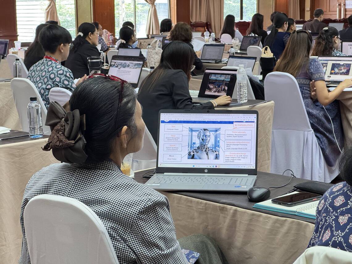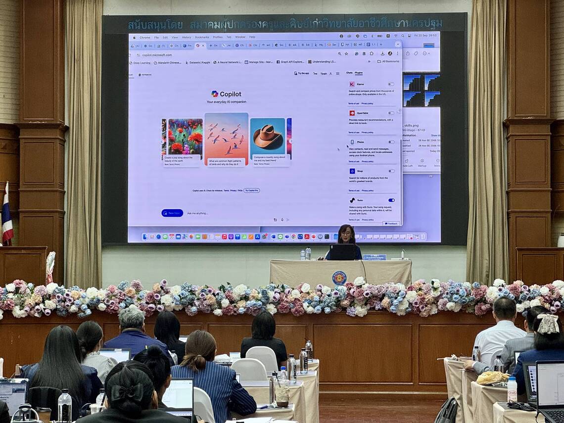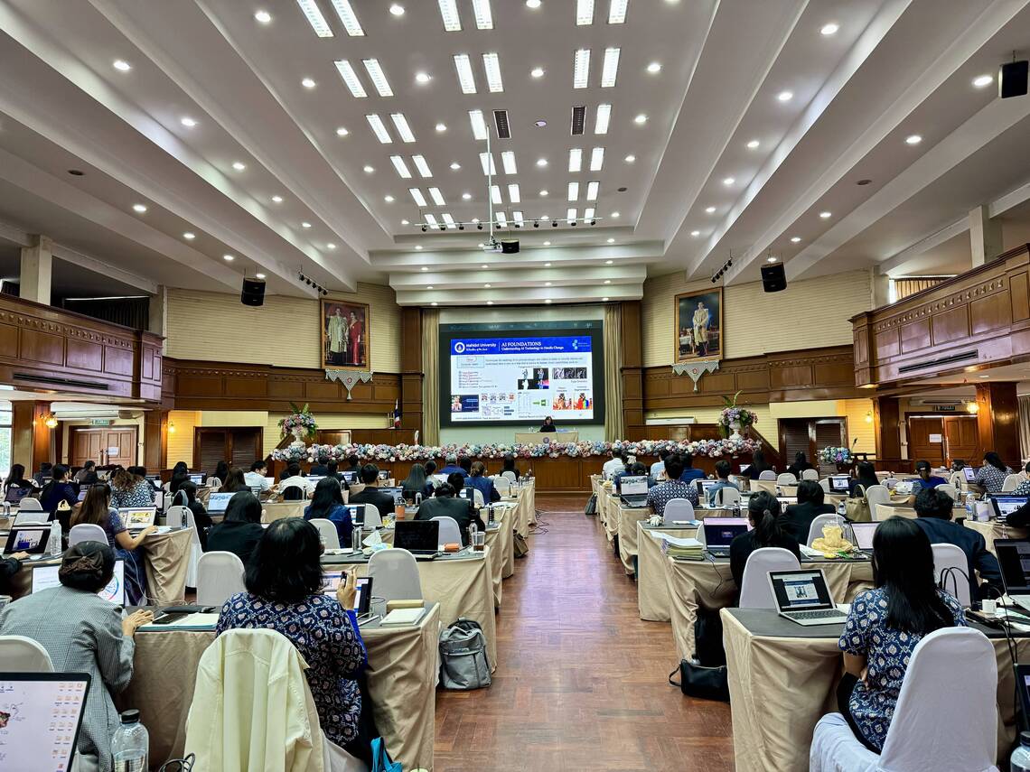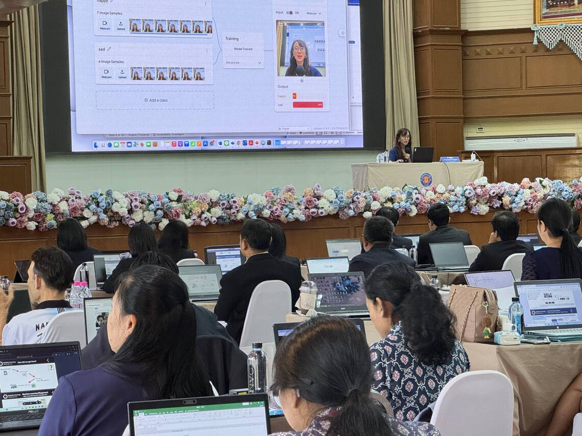 วันที่ 20 กันยายน 2567 คณะเทคโนโลยีสารสนเทศและการสื่อสาร มหาวิทยาลัยมหิดล (ICT Mahidol) จัดโครงการอบรม “การประยุกต์ใช้เทคโนโลยีปัญญาประดิษฐ์ (AI) เพื่อเสริมสร้างทักษะด้านการวิจัยอย่างมีประสิทธิภาพ สำหรับสำนักวิจัยและพัฒนาการอาชีวศึกษา” โดยได้รับเกียรติจาก ดร. นิรุตต์ บุตรแสนลี ผู้อำนวยการสำนักวิจัยและพัฒนาการอาชีวศึกษา เป็นผู้กล่าวเปิดการอบรม และ ผศ.ดร. ทิพาจินต์ ไทยพิสุทธิกุล ผู้ช่วยคณบดีฝ่ายบริการวิชาการและถ่ายทอดเทคโนโลยี เป็นวิทยากรถ่ายทอดความรู้ด้านการประยุกต์ใช้ปัญญาประดิษฐ์ (Artificial Intelligence (AI)) เพื่อช่วยเหลือในการพัฒนางานวิจัย ให้แก่บุคลากรด้านการวิจัย ณ วิทยาลัยอาชีวศึกษานครปฐม จังหวัดนครปฐม