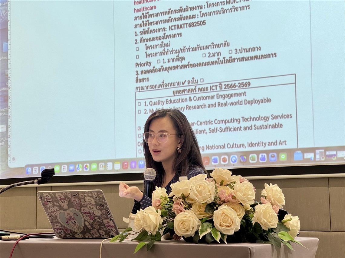 วันที่ 9 – 11 กุมภาพันธ์ 2569 คณะเทคโนโลยีสารสนเทศและการสื่อสาร มหาวิทยาลัยมหิดล (ICT Mahidol) ร่วมกับ สถาบันพัฒนาบุคลากรภาครัฐด้านดิจิทัล (TDGA) จัดโครงการอบรมเชิงปฏิบัติการหลักสูตร “การใช้เครื่องมือดิจิทัลเพื่อการทำงาน (Essential Digital Tools for Workplace) (DGA102)” รุ่นที่ 6 ประจำปีงบประมาณ 2569 โดยได้รับเกียรติจาก ผศ. ดร.ทิพาจินต์ ไทยพิสุทธิกุล ผู้ช่วยอธิการบดีฝ่ายวิจัย มหาวิทยาลัยมหิดล และอาจารย์ประจำกลุ่มวิชาวิทยาการคอมพิวเตอร์ คณะ ICT พร้อมด้วย ผศ. ดร.ศิริเพ็ญ พงษ์ไพเชฐ ผู้ช่วยคณบดีฝ่ายสารสนเทศและระบบ ดร.ศุจิกา ศรีนันทกุล ผู้ช่วยคณบดีฝ่ายพัฒนาคุณภาพและจัดการความรู้ และ คุณปราชญ์ ชัยศิริ นักวิชาการคอมพิวเตอร์ งานสารสนเทศและระบบ ร่วมเป็นวิทยากรถ่ายทอดองค์ความรู้เกี่ยวกับการใช้เครื่องมือดิจิทัลเพื่อพัฒนาทักษะและเพิ่มประสิทธิภาพในการทำงาน ให้แก่บุคลากรของภาครัฐ จำนวน 33 คน ณ โรงแรม TK. Palace Hotel & Convention กรุงเทพมหานคร