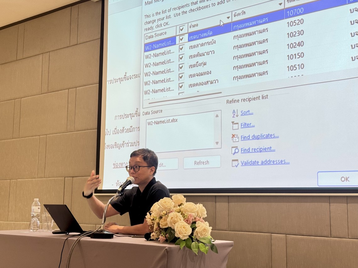 วันที่ 25 – 27 กุมภาพันธ์ 2569 คณะเทคโนโลยีสารสนเทศและการสื่อสาร มหาวิทยาลัยมหิดล (ICT Mahidol) ร่วมกับ สถาบันพัฒนาบุคลากรภาครัฐด้านดิจิทัล (TDGA) จัดโครงการอบรมเชิงปฏิบัติการหลักสูตร “การใช้เครื่องมือดิจิทัลเพื่อการทำงาน (Essential Digital Tools for Workplace) (DGA102)” รุ่นที่ 7 ประจำปีงบประมาณ 2569 โดยได้รับเกียรติจาก ผศ. ดร.ทิพาจินต์ ไทยพิสุทธิกุล ผู้ช่วยอธิการบดีฝ่ายวิจัย มหาวิทยาลัยมหิดล และอาจารย์ประจำกลุ่มวิชาวิทยาการคอมพิวเตอร์ คณะ ICT พร้อมด้วย คุณศิริพร โรจนโกศล ผู้ช่วยคณบดีฝ่ายเทคโนโลยีสารสนเทศ ดร.ศุจิกา ศรีนันทกุล ผู้ช่วยคณบดีฝ่ายพัฒนาคุณภาพและจัดการความรู้ และ คุณปราชญ์ ชัยศิริ นักวิชาการคอมพิวเตอร์ งานสารสนเทศและระบบ ร่วมเป็นวิทยากรถ่ายทอดองค์ความรู้เกี่ยวกับการใช้เครื่องมือดิจิทัลเพื่อพัฒนาทักษะและเพิ่มประสิทธิภาพในการทำงาน ให้แก่บุคลากรของภาครัฐ จำนวน 41 คน ณ โรงแรม TK. Palace Hotel & Convention กรุงเทพมหานคร