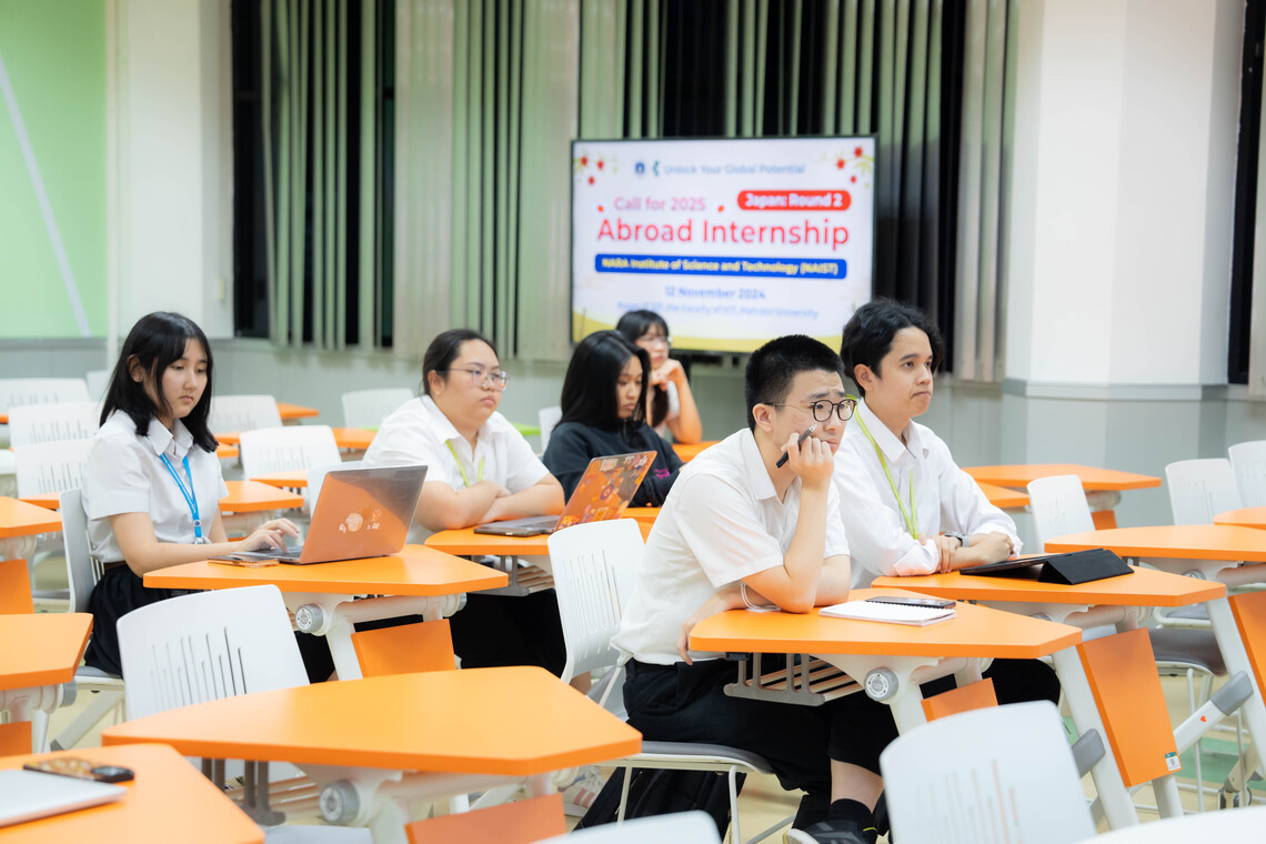 ในโอกาสนี้ นักศึกษารุ่นพี่ชั้นปีที่ 4 ที่เข้าร่วมโครงการฝึกประสบการณ์วิชาชีพด้าน ICT ประจำปีการศึกษา 2566 ณ Nara Institute of Science and Technology (NAIST) ได้แก่ นายธนัท พิชิตพันธ์พงศ์ และ นางสาวสุชาวภักดิ์ การเจริญดี ยังได้เข้าร่วมแบ่งปันประสบการณ์ในการทำโครงงานวิจัย และการใช้ชีวิตระหว่างฝึกประสบการณ์วิชาชีพด้าน ICT อีกด้วย