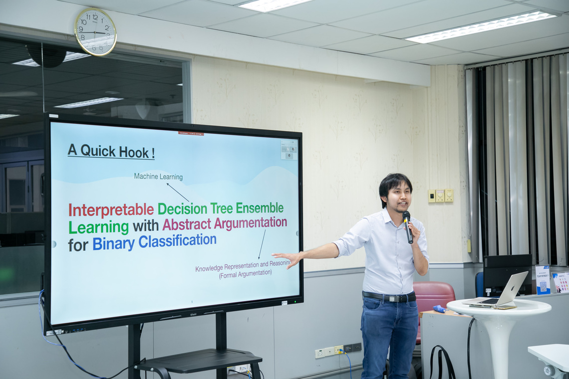 วันที่ 25 ตุลาคม 2566 คณะเทคโนโลยีสารสนเทศและการสื่อสาร มหาวิทยาลัยมหิดล (ICT Mahidol) นำโดย ดร.ชัยยงค์ รักขิตเวชสกุล อาจารย์ประจำกลุ่มวิชาวิทยาการคอมพิวเตอร์ และอาจารย์ประจำกลุ่มวิจัยวิศวกรรมซอฟต์แวร์และการวิเคราะห์ธุรกิจ (Software Engineering and Business Analytics Research Clusters (SEBA)) จัดโครงการบริการวิชาการสู่สังคม สัมมนาวิชาการ เรื่อง “Interpretable Decision Tree Ensemble Learning with Abstract Argumentation for Binary Classification” โดยได้รับเกียรติจาก ผู้ช่วยศาสตราจารย์ ดร.ธีรเดช ราชรักษ์ Senior Lecturer ผู้ก่อตั้ง Reasoning & Learning (ReaLearn) Laboratory, School of Information Science, Japan Advanced Institute of Science and Technology (JAIST) ประเทศญี่ปุ่น เป็นผู้ถ่ายทอดองค์ความรู้เกี่ยวกับด้าน Machine Learning และด้านการโต้แย้งเชิงตรรกะ (Argumentation) ให้แก่บุคลากร นักศึกษามหาวิทยาลัยมหิดล และผู้สนใจ ณ ห้อง IT210 ชั้น 2 คณะ ICT มหาวิทยาลัยมหิดล ศาลายา