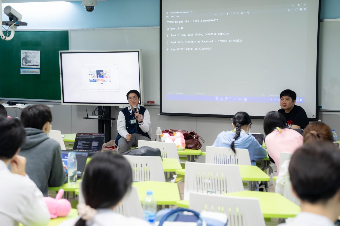 การบรรยายครั้งนี้มุ่งถ่ายทอดเส้นทางการเติบโตในสายอาชีพด้านเทคโนโลยี ตั้งแต่การเริ่มต้นในตำแหน่ง Junior Developer ไปจนถึงการก้าวสู่บทบาท Tech Lead โดยครอบคลุมทั้งความท้าทาย อุปสรรค ความผิดพลาด ตลอดจนบทเรียนสำคัญที่ได้รับในแต่ละช่วงของการทำงาน เพื่อเป็นแนวทางให้นักศึกษาสามารถนำไปประยุกต์ใช้ในการพัฒนาตนเองและวางแผนเส้นทางอาชีพได้อย่างเหมาะสม โดยหนึ่งในประเด็นสำคัญของการบรรยาย คือ การแนะนำเส้นทางอาชีพในสาย Agile พร้อมแนะแนวทางการประยุกต์ใช้ Agile ในองค์กรระดับโลก ตลอดจนชี้ให้เห็นบทบาทและหน้าที่ของ Scrum Master และความแตกต่างระหว่างตำแหน่ง Scrum Master, Developer และ Tech Lead ได้อย่างชัดเจน นอกจากนี้ วิทยากรยังได้กล่าวถึงทักษะสำคัญสำหรับผู้ที่สนใจเส้นทางอาชีพดังกล่าว ไม่ว่าจะเป็นทักษะการอำนวยความสะดวกภายในทีม การบริหารจัดการ Sprint การแก้ไขปัญหาความขัดแย้ง และการส่งเสริมให้ทีมสามารถดำเนินงานและส่งมอบผลงานได้อย่างต่อเนื่อง อีกทั้งยังมีการให้คำแนะนำเกี่ยวกับการเตรียมความพร้อมก่อนเข้าสู่ตลาดแรงงานจริง โดยเน้นทั้งทักษะด้านเทคนิคที่องค์กรให้ความสำคัญ ควบคู่กับทักษะการทำงานเป็นทีมและทักษะการสื่อสารในสภาพแวดล้อมการพัฒนาซอฟต์แวร์แบบมืออาชีพ