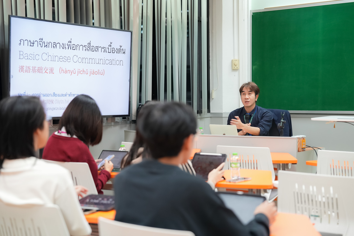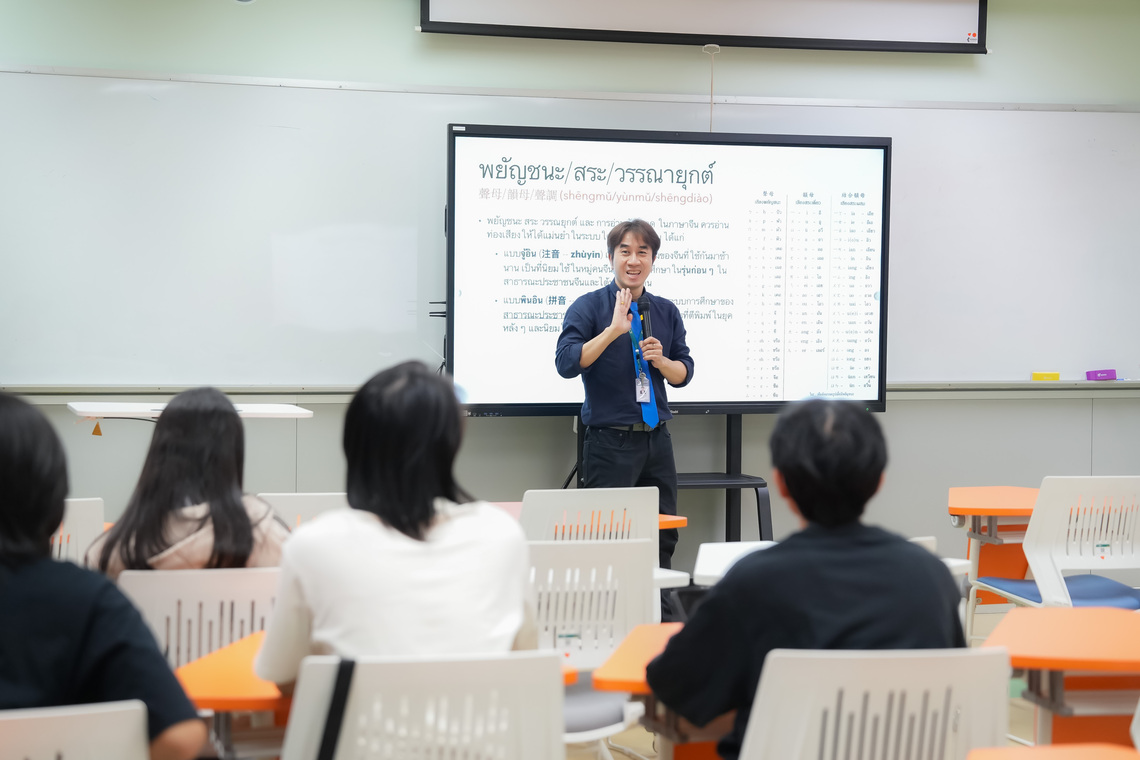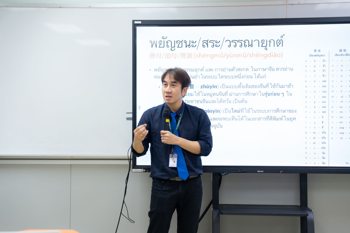 วันที่ 26 พฤษภาคม 2568 คณะเทคโนโลยีสารสนเทศและการสื่อสาร มหาวิทยาลัยมหิดล (ICT Mahidol) จัดสัมมนาวิชาการ MUICT-AST The Series ในหัวข้อ “ภาษาจีนกลางเพื่อการสื่อสารเบื้องต้น” โดยได้รับเกียรติ ดร.กนกศักดิ์ วัฒนะโชติ อาจารย์ประจำกลุ่มวิชาวิทยาการคอมพิวเตอร์ เป็นวิทยากรถ่ายทอดองค์ความรู้เกี่ยวกับการสื่อสารภาษาจีนขั้นพื้นฐาน ทั้งด้านคำศัพท์ ไวยากรณ์ และการฝึกสนทนาในชีวิตประจำวัน ให้แก่นักศึกษาของคณะ ICT จำนวน 15 คน ณ ห้อง IT331 ชั้น 3 คณะ ICT มหาวิทยาลัยมหิดล ศาลายา