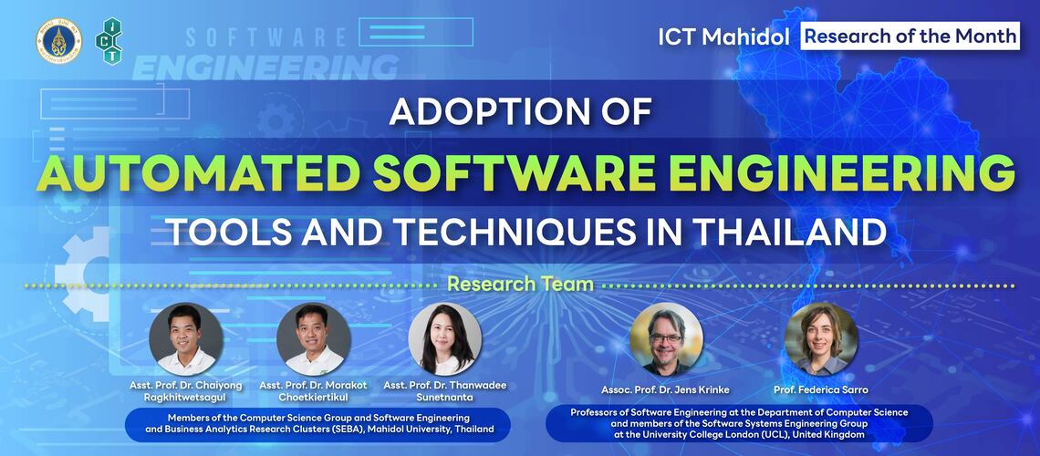 งานศึกษาวิจัยเรื่อง Adoption of Automated Software Engineering Tools and Techniques in Thailand เป็นผลงานจากคลัสเตอร์วิจัย Software Engineering and Business Analytics (SEBA) ของคณะเทคโนโลยีสารสนเทศและการสื่อสาร มหาวิทยาลัยมหิดล (ICT Mahidol) ซึ่งคณะผู้วิจัยประกอบไปด้วย ผศ. ดร.ชัยยงค์ รักขิตเวชสกุล ผศ. ดร.มรกต เชิดเกียรติกุล และ ผศ. ดร.ธันวดี สุเนตนันท์ นอกจากนี้ยังมีผู้ร่วมวิจัยจาก University College London ประเทศสหราชอาณาจักร อีกสองท่าน คือ Assoc. Prof. Dr. Jens Krinke และ Prof. Federica Sarro ซึ่งงานศึกษาวิจัยนี้เป็นงานที่ศึกษาการนำเครื่องมือและเทคนิค ASE มาใช้ในการพัฒนาซอฟต์แวร์ในบริษัทด้านซอฟต์แวร์ขนาดเล็กไปจนถึงขนาดกลาง (SMEs) ของประเทศไทย พร้อมทั้งสำรวจปัญหาหรือข้อจำกัดในการใช้งานเครื่องมือ ASE ที่นักพัฒนาซอฟต์แวร์ในบริษัทขนาดกลางและขนาดเล็กในประเทศไทยพบเจอในปัจจุบัน