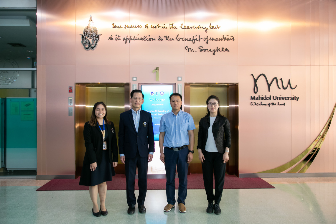 วันที่ 19 ธันวาคม 2566 คณะเทคโนโลยีสารสนเทศและการสื่อสาร มหาวิทยาลัยมหิดล (ICT Mahidol) นำโดย ดร. เพชร สัจจชลพันธ์ รองคณบดีฝ่ายบริหารและทรัพยากรบุคคล และ ผศ.ดร. จิดาภา ไกรสังข์ ผู้ช่วยคณบดีฝ่ายพัฒนาหลักสูตร เป็นผู้แทนคณบดี ร่วมให้การต้อนรับคณะอาคันตุกะจาก Qingdao University of Science and Technology สาธารณรัฐประชาชนจีน ในโอกาสเข้าหารือความร่วมมือด้านวิชาการและวิจัยร่วมกันในอนาคต ระหว่างสองมหาวิทยาลัย ณ ห้องประชุม OSM 1 สำนักงานอธิการบดี มหาวิทยาลัยมหิดล ศาลายา