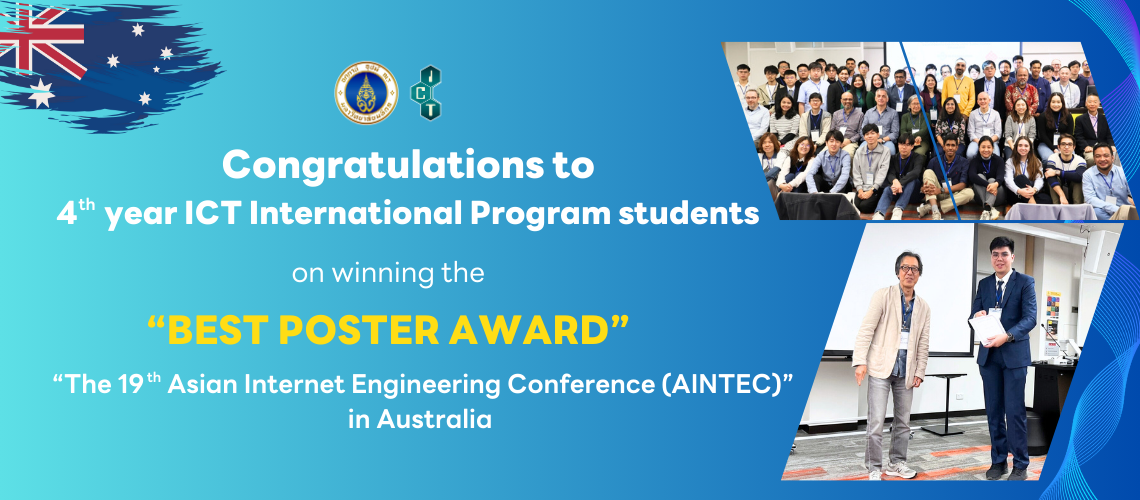 The Faculty of Information and Communication Technology at Mahidol University (ICT Mahidol) proudly congratulates Mr. Perakorn Nimitkul, Mr. Phichayut Ngoennim, and Mr. Phuthana Ampunant, fourth-year students in the Bachelor of Science in Information and Communication Technology (ICT International Program), for receiving the “Best Poster Award” at the 19th Asian Internet Engineering Conference (AINTEC). Their award-winning poster, titled “Software-Defined Intrusion Detection System for Flexible Network Security,” was presented at the conference held at the School of Electrical Engineering, University of New South Wales, Australia, on August 9, 2024.
